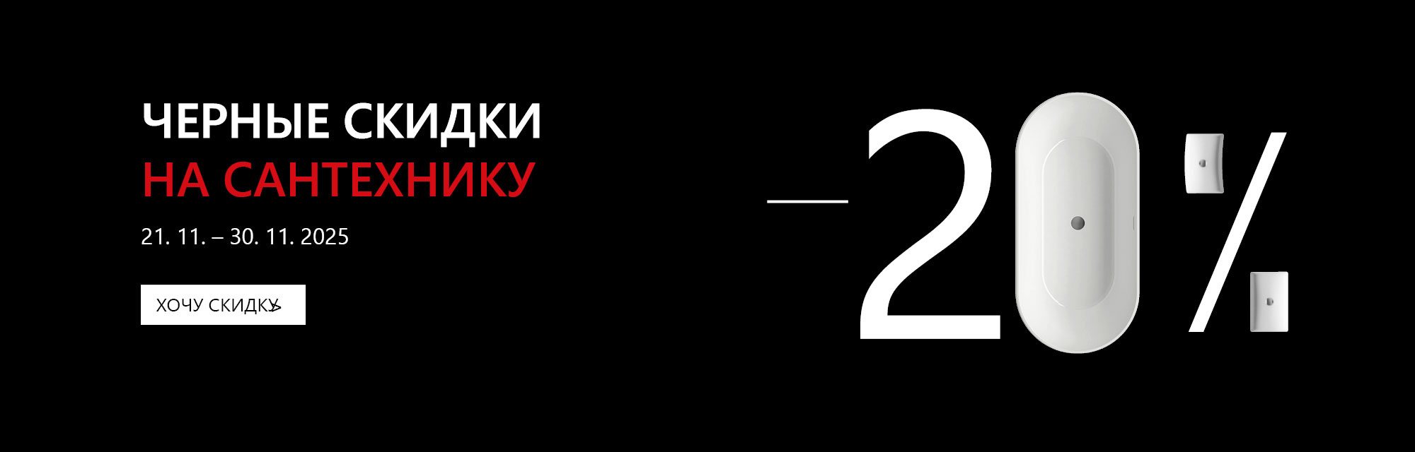 В период Черной Пятницы чешский производитель высококачественной сантехники «RAVAK» дарит Вам максимальные скидки -20%* на выбранный ассортимент! Спешите! Акция действует с 21.11 по 30.11.2025: