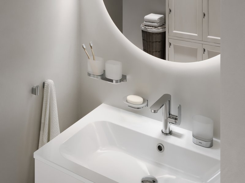 Держатель для зубных щеток Chrome II можно использовать для размещения зубных щеток, зубной пасты или других мелких предметов, которые должны быть под рукой. Аксессуары для ванных комнат доступны в следующих вариантах исполнения: хром, черный матовый.