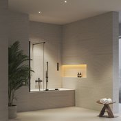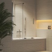 К каждой прямоугольной ванне несомненно предлагается штора. У Вас есть возможность выбрать способ открывания шторы, тип витража и цвет профиля.