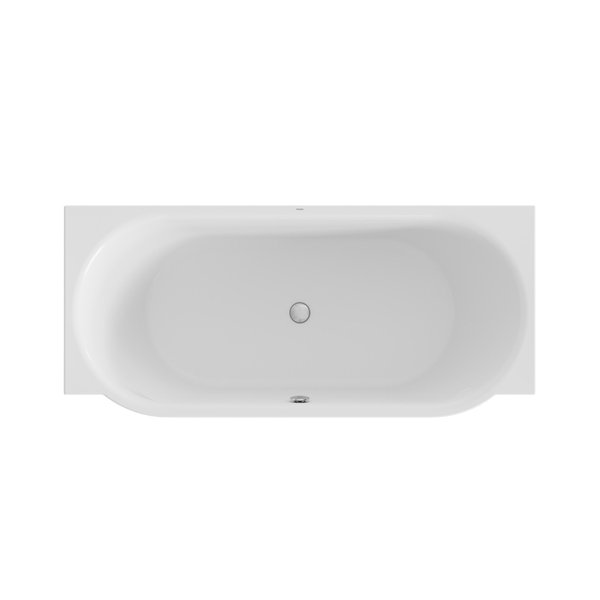 Ергономічна ванна, яка ідеально підходить для встановлення біля стіни, в кутку або в ніші. Зручна спинка дозволяє комфортно спертися, а центральний злив дає можливість лежати з обох боків ванни.