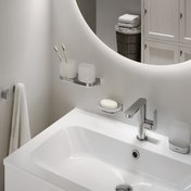 Тримач для мила в дизайні Chrome II має практичне застосування у ванній для швидкого миття рук. Аксесуари для ванних кімнат доступні у варіантах виконання: хром і чорний матовий.