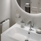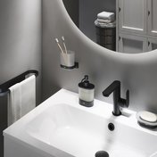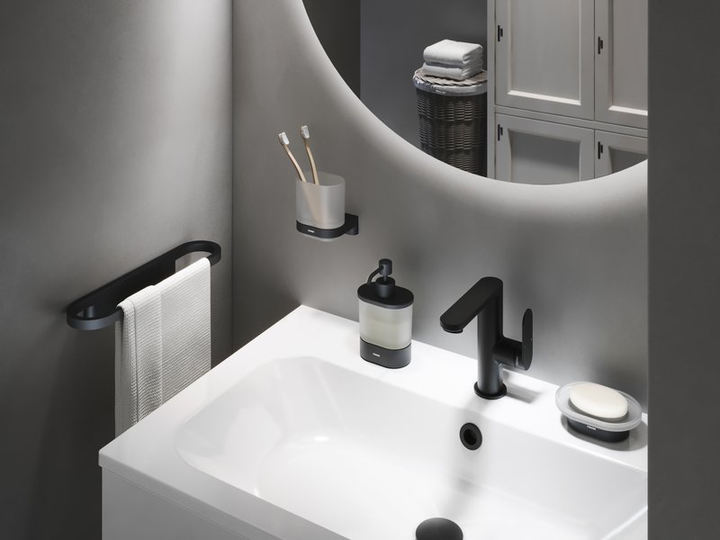 Настінний тримач для рушників є практичним доповненням. Аксесуари для ванних кімнат доступні у варіантах виконання: хром і чорний матовий.