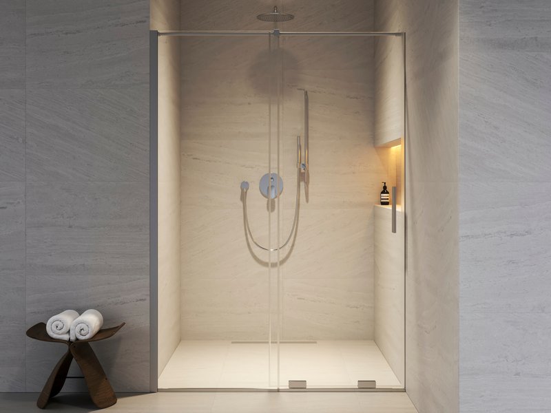 Витончений безрамковий дизайн візуально освітлює весь простір. Практична розсувна система економить місце та забезпечує комфортне використання навіть у невеликих ванних кімнатах. Плавний хід міцного 8-міліметрового скла та точно оброблені деталі забезпечують комфортне використання протягом тривалого часу.
