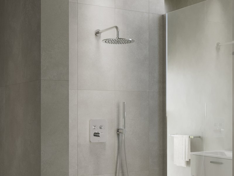Термостатичний змішувач прихованого монтажу може компенсувати коливання тиску в трубах та температури води, гарантуючи тим самим, що вода завжди буде такої температури, яку ви встановили.