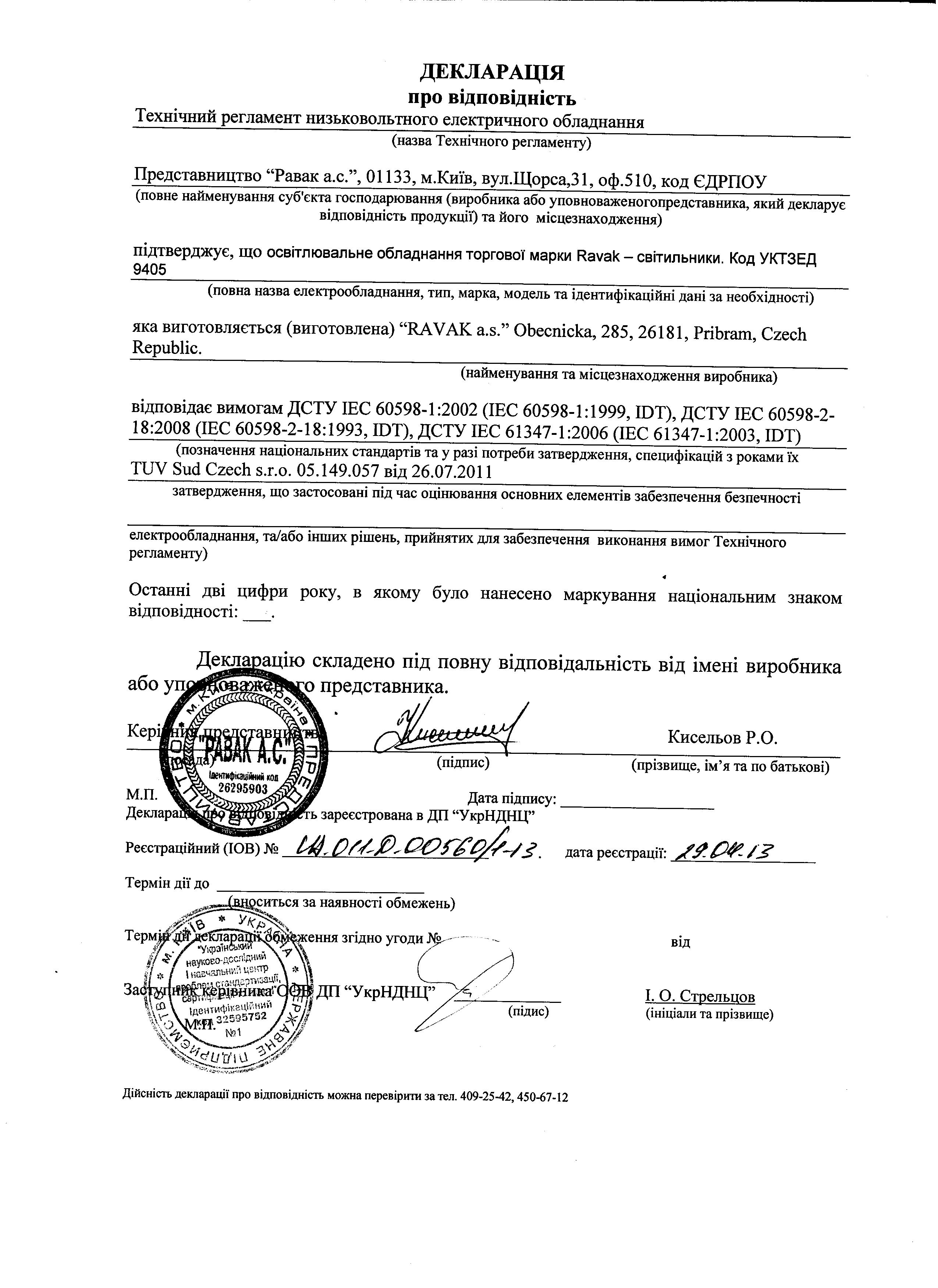 Висновок ДСЕЕ - Умивальники та піддони Ravak (PDF 1,5 MB)