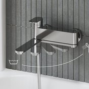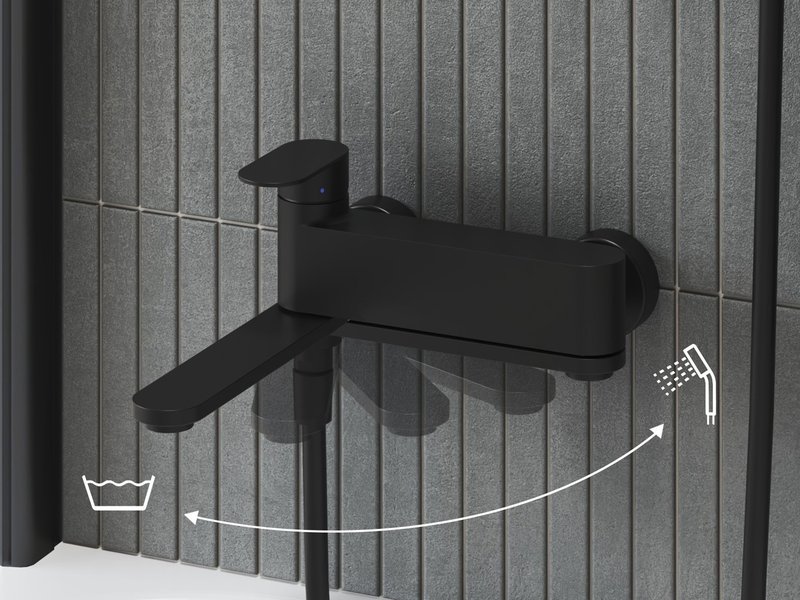 Оригінальний змішувач для ванни має вилив, який можна повернути до стіни, тому він не займає зайвого місця у ванній кімнаті. У цьому положенні душ тектиме при включенні води. У класичному положенні вода зі змішувача для ванни тектиме у бік ванни.