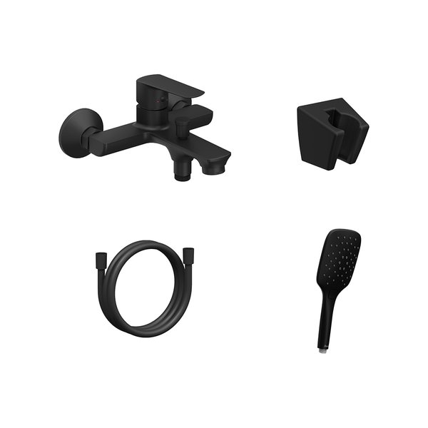 LF 022.20BLM.+S Настінний змішувач для ванни Life з душовим набором, чорний матовий