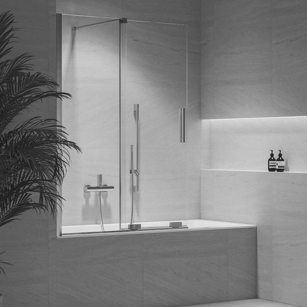 Двосекційна розсувна шторка для ванни прямокутної форми. Хромоване або чорне виконання, прозоре скло із захисним шаром Ravak AntiCalc®. Поворотний виріб для лівого та правого встановлення.