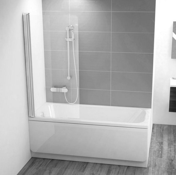 Підходить для прямокутних ванн з рівним переднім бортом. Штора складається з однієї рухомої частини, яку можна повернути назовні ванни. Завдяки продуманому способу відкривання штора чиститься набагато простіше.