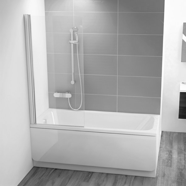 Підходить для прямокутних ванн з рівним переднім бортом. Штора складається з однієї рухомої частини, яку можна повернути назовні ванни. Завдяки продуманому способу відкривання штора чиститься набагато простіше.