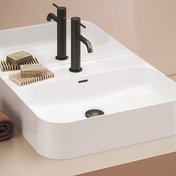 Тримайте мило та інші аксесуари навколо змішувача, щоб вони були під рукою. Презентуємо унікальний умивальник з отвором для установки змішувача прямо в умивальник. У зоні змішувача, де часто буває сиро, ми створили місце для зберігання, наприклад, мила. Все інше можна поставити на стільницю біля умивальника.