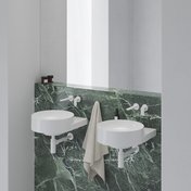 Ми пропонуємо змішувачі для умивальника стандартною висотою 174 мм або подовженою висотою 220 мм, які підходять для великих і глибоких умивальників, де ви можете наповнювати водою, наприклад навіть вищі місткості. Дуже високі змішувачі заввишки 335 мм підходять для умивальників на стільницю. Ви можете встановити їх поруч з умивальником там, де вам зручніше. Асортимент умивальників, що окремо стоять, доповнює змішувач на три отвори з вигнутим виливом.
